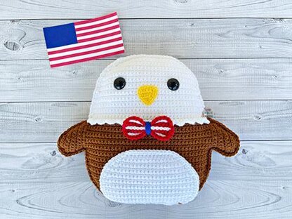 Our finished Eagle Squish Kawaii Cuddler® is 12" x 14". Hook size, yarn choice, and crochet tension will affect each individual result.