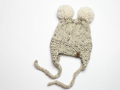 Ear Flaps Double Pompom Toque Kids Ear Flaps Hat
