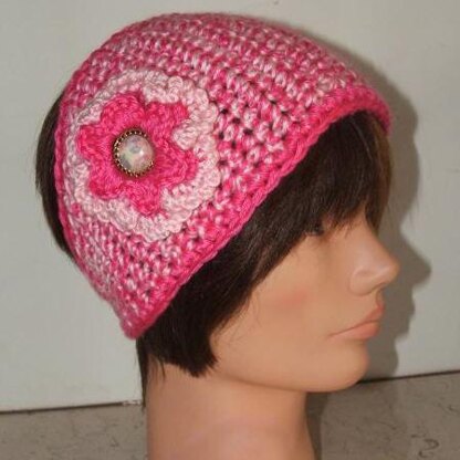 Supplies: 3 ounces 4 ply worsted weight (Caron Simply Soft used in prototype), G and J aluminum crochet hook, 5/8" button, yarn needle, needle and thread. Optional-5/8 -7/8" button for flower.