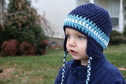 The sizes included in the pattern are newborn, 0-3 months, 3-6 months, 6-9 months, 9-12 months and 12-24 months. Pictures are of hat size 12-24 months.