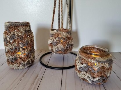 This Earthy Luminary is such a versatile pattern with dozens of uses! This crochet jar cover will fit pint and quart sized Ball canning jars. You could fill it with q-tips in your bathroom, silverware in your kitchen or at your cookout, your crochet hooks, a citronella candle to keep those pesky mosquitoes at bay, or just a standard candle or battery powered candle to create the perfect ambiance for any occasion.