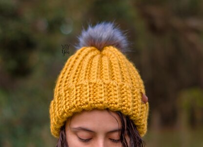 - Scissors, Measuring Tape, Yarn Needle/Blunt Tapestry Needle, Faux Fur Pom Pom, Button, Leather/Faux Leather Tag, If using thick yarn, embroidery floss