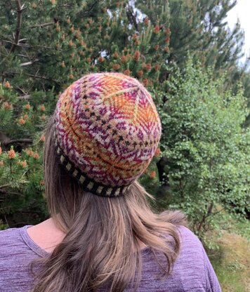 My East Burn Beanie is my second release in a series of hat patterns all inspired by the flora, fauna, life and countryside in and around Northmavine in Shetland. A place I’m proud to call home! The East Burn Beanie was inspired by a small woodland just a few miles from our home – East Burn Woods – which we often walk through when we are craving trees! The colours are inspired by the vivid changing hues we see there throughout the year – the leaves and pines, the heather and grasses. The beanie starts with a corrugated rib and is worked entirely in the round with a pattern based on traditional Fairisle motifs. It is has been designed to pull down low over your ears to protect them from the biting North winds! Otherwise it can be worn further back on your head as a slouchy style beanie.