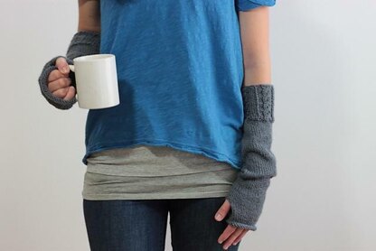 East End Armwarmers is an easy and fun project, perfect for knitters of all skill levels. These slouchy mitts are seamless and the length reaches just over the elbow, but is meant to be scrunched down for a warm and cozy fit. The arm cuff features a simple cable & rib pattern that gives the armwarmers just enough visual interest without being too busy. It features a simple thumbhole so that all of your fingers (and thumb!) are free to text, type or knit. It was designed using Shibui's Baby Alpaca DK yarn and it uses just 1 skein! Any DK-weight yarn will work, especially if it contains alpaca, cashmere or silk (for a super soft drape).