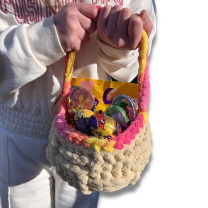 This crochet pattern is will help you to create a round Easter basket with super bulky blanket yarn. The basket is sturdy and big enough to hold lots of little Easter eggs and treats.