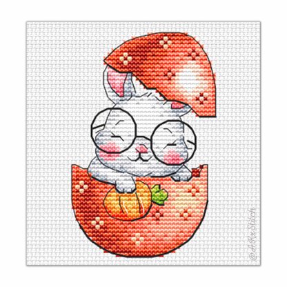Easter Bunny with a Carrot & Egg Counted Cross Stitch. Easy to Follow Embroidery Chart featuring a cute baby rabbit with a carrot inside an easter egg in a bright colourful watercolour style. Great handmade gift idea for a friend or family, fits a standard A5 card.\n\nSize: 36w x 56h stitches\nStitched on Aida 14ct: approx 7 x 10 cm (3 x 4 in)\nDMC Threads: 18 solid colours (no blends)\nUsed stitches: full cross stitch, backstitch, French knots (optional)\nSkill level: Easy / Beginner\n \n\nCross stitch pattern in PDF, Instant Digital Download includes: 1) cover page with preview; 2) instructions, symbols key and shopping list (DMC thread colour numbers and estimates, as well as fabric options); 3) two black and white charts, with and without backstitch; 4) two colour charts, with and without backstitch; 5) single page PDF for Pattern Keeper (available on request).\n\nPlease note: This pattern is for personal use only - not for commercial use. You can't make copies of our charts to distribute (either as PDF or printed versions) but you can definitely sell your finished cross stitch work.