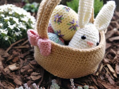 This Easter basket crochet set includes the patterns for the flower eggs, stripe eggs, bunny egg, basket and bow. You can play around with different colour yarns and create your unique Easter basket :) Have fun!