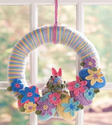 Easter Bunny Wreath in Red Heart Super Saver Economy Solids and Multis - LW3563