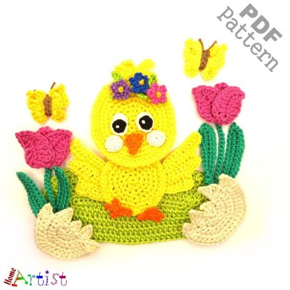 The pattern provides instructions to make a cute crochet applique that can be used in inumerable ways...decorate and personalize your favorite objects like hats, t-shirts, bags, school knap-sacks and lots of other stuff you can think of. Chick: 5 inches across by 5 ½ inches tall using crochet hook 2.5mm but the size can be varied by using thinner or thicker yarn and types of hook. Colors can be changed according to your personal preference. The pattern is designed for worsted weight yarn and uses American English crochet terms. This crochet pattern is available for Instant Download. Once your payment is received, you will get an email with the download link and details of your order. In case of problems feel free to contact me anytime.