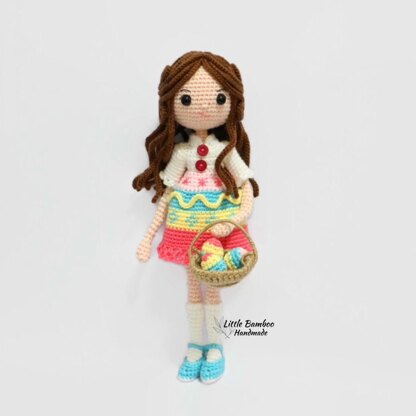 Materials: • 4 Ply Fingering Acrylic / Milk Cotton Yarn - Light peach - White - Pink - Dark brown - Watermelon red - Blue - Yellow - Khaki brown • Fiberfill or cotton • Crochet hook size 2 mm • Wire • Black eye 9 mm • Hook and eye ( 2 sets ) • 10 mm maroon button ( 2 ) Skill level: INTERMEDIATE