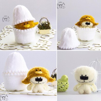 The toy is knitted in the round and is recommended for Advanced Beginner Knitters. The finished bunny is approximately 4,33 inches ( 11 cm ) tall. The egg size - 6,7 inches ( 17 cm ).