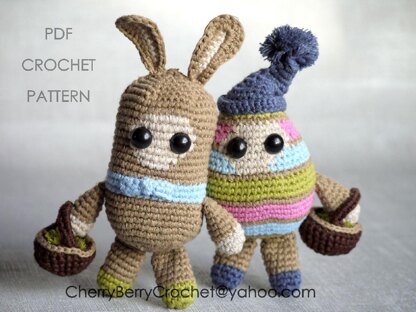 - The Bunny is 18cm from feet to tips of ears standing, Egg is 15cm from feet to top of hat (not including the pom pom) standing