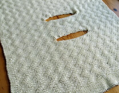 A super easy knitting pattern for a stylish baby car seat blanket. This blanket features two holes to thread the car seat straps through, which stops little feet from kicking the blanket off. The top of the blanket folds down over the strap holes to keep baby cosy.