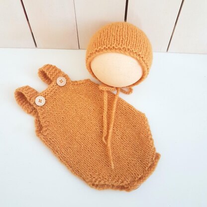 A darling newborn - 3 months old baby playsuit with shoulder straps. Buttons in the gusset for easy diaper changes. Buttons on the shoulder straps are optional, you can leave them off, or make ribbon-ties like the pink romper The pattern includes instructions for a romper 0-3 months AND a simple bonnet for sizes Newborn to 6 months old Quick and fun to make. Perfect as a photo prop, or for Summer for baby. **Skill Level : Intermediate - you need to be able to read a basic pattern, but it is simple to follow **Yarn used: Can be made in any aran knit yarn. **Simple instructions, with lots of photos. **Knitting Style: Knit back and forth on straight needles OR on a circular needle (NOT in the round)