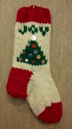 I've spent hours knitting stranded color Christmas stockings, and wanted something that would come together quickly. This generous stocking, knit with bulky yarn and using duplicate stitch to create the pattern, fit the bill precisely. Picking buttons for the decorations for the tree completed an absolutely fun experience! I hope you have as much fun as I did!