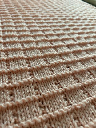 Different weighted yarns can be used for this baby blanket. Please note that if you should use a different weighted yarn, the measurements might differ. Adjust your material requirements as needed. This pattern can be adjusted in width and lenght by adding or reducing the amount of stitches as indicated in the pattern.