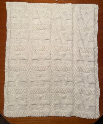 Ideal for a beginner knitter and perfect for a baby shower gift. This pattern features a repeating star design with chunky textured borders, created using just knit and purl stitches (stocking and garter stitch).