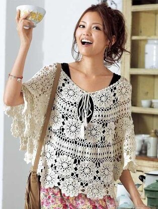 This crochet effortlessly chic cover up gives you a bohemian way to wear this season’s see-through trend. The delicate neck line and soft scallop detail give fabulous dreamy essence. It can be worn either as cocktail or cute casual style piece or boho swim/beach cover up. It`s perfect for work or play.