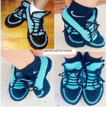 With video Quick and easy Crochet pattern home shoes, sport shoes, carpet slippers size UK: 2- 11, Us 3-12 for women, teens, Boys and Men