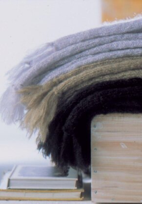 Yarn Quantities/ shade Jo Sharp Rare Comfort Kid Mohair Version 1 – 13 x 25g balls / Tranquil 609 (top throw in image) Version 2 – 13 x 25g balls / Cello 605 (middle throw in image) Version 3 – 13 x 25g balls / Romany 602 (bottom throw in image)