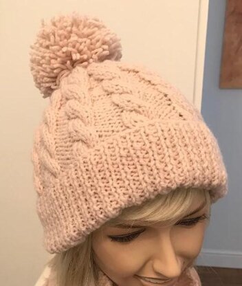 Knitting pattern instructions to make a lovely easy cable hat with turned back brim. One size: Adult. Suitable for women or men (unisex) knitted on straight needles size 4mm (UK8) and 5mm (UK6) and you will need a cable needle. The hat takes approx. 150g Aran weight yarn, so you may need 2 x 100g balls of yarn. This is sufficient to make a matching pom pom if required. You can wear with or without a pom pom or use a faux fur one, make the hat unique for you.