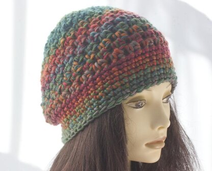This pretty hat is not difficult and works up quickly and is knit is readily available bulky yarn. You can make one in an evening for last minute gifts. The hat has an interesting textured pattern .