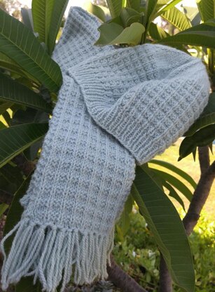| One size only: | Hat fits older child/adult- scarf about 60" by |