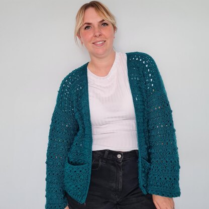 Echo Beach is the perfect transitional cardi for those cool evenings outside. Made from DK yarn and a super textured stitch pattern, she's just the right balance of cool and cosy. The repeats are interesting enough to not be boring but they won't take your attention away from the telly. She's the perfect piece to work on while relaxing in the evenings. Plus she has the essential for any cardi- pockets! Designed with approx. 15cm positive ease for a casual, oversized fit, but customisable throughout. See also the Echo Beach Jumper.