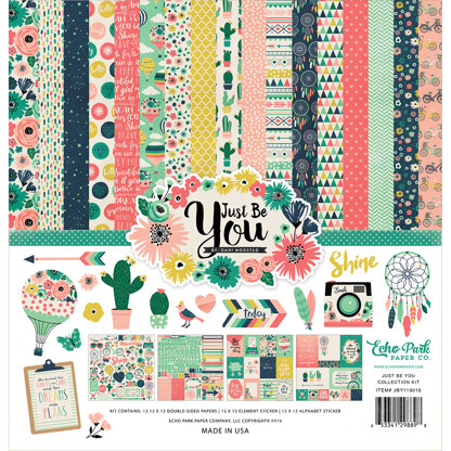 Echo Park Paper-Collection Kit: Just Be You. The perfect start to your next scrapbook page, card or mixed media project! This package contains twelve 12x12 inch double-sided textured sheets and two 12x12 inch sticker sheets. Acid and lignin free. Made in USA.
