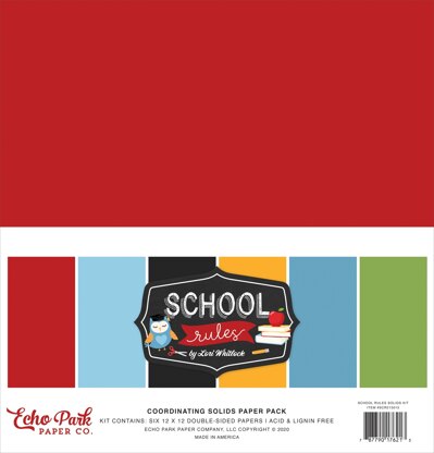Echo Park Paper Echo Park Double-Sided Solid Cardstock 12"X12" 6/Pkg - School Rules, 6 Colors
