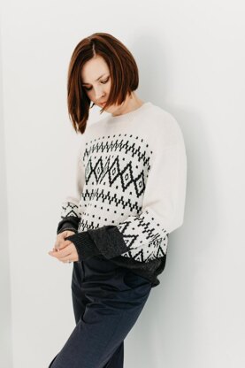 Techniques used: Lifted increases, Backwards loop cast-on, stranded colourwork including a few rows on the wrong side, knitting in the round, Ladderback Jacquard, short rows, Tubular bind-off.