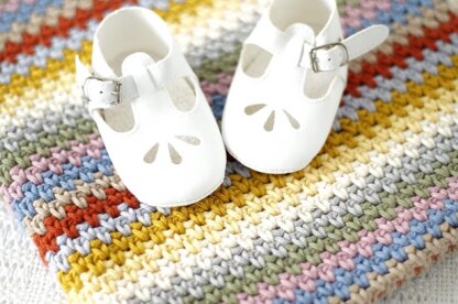 Easy to make and ideal for a beginner with full instructions (in both UK and US terms). Includes lots of photos to guide you through making this lovely bright blanket for your baby or as a wonderful, colourful gift.