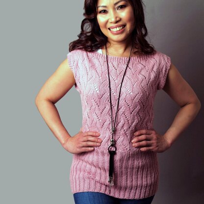 Knit a perfect top for the new season and make a classic knit to last for years to come. The cotton and silk blend yarn perfectly highlights the lace pattern and creates a light and breathable fabric, ready for warm summer days. The deep ribbed waistband is beautifully flattering and works well with waist and hip height garments.