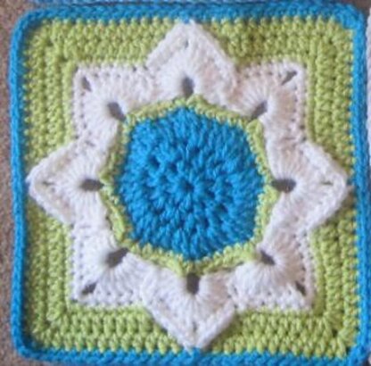 An eye-catching design with clever construction, this afghan square can be completed by the beginner crocheter. Mostly double crochet, the petals are formed in a similar manner to the crocodile stitch. Looks great in a sampler afghan or one allover design.