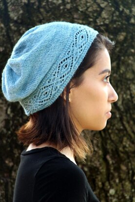 The cable and lace band around the brim of this fashionable slouchy hat is striking and distinctive, and then the rest of the hat is worked in relaxing stockinette. This is the perfect hat to reach for when you’re going out and want to feel a little fancy—even if you’re just heading to the grocery store.