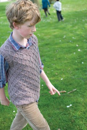 This classic cabled, v-neck vest starts with a wide rib at the hem that moves organically into the cable pattern. The cable is then worked continuously to armholes. At the armholes, the body is separated into front and back and the armhole and collar trims are worked after the shoulders have been joined.