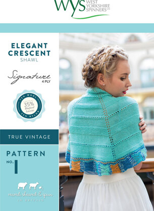 Elegant Crescent Shawl in West Yorkshire Spinners Signature 4 Ply - Downloadable PDF