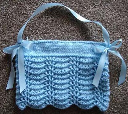 Reminiscent of a favorite afghan pattern. But this one is slightly different. This elegant style is so well suited for formal wear, that you will want to make one for each of the brides maids too! Have several in your own closet in different colors. Patten is rather easy to do, and works up quickly. Finished purse is about 10” by 7”. Uses worsted weight yarns, and knitting needles US # 8. You will also need a 9 inch skirt zipper to top of purse, and ribbon for handle and side bows. The teens really love this one for Prom’s!