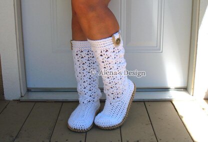 The lace shaft make these boots look elegant and feminine. Dress up your feet and legs with these cute boots. You deserve this. The Boots are made with two soles, yarn sole and jute sole. It makes the bottom of your boots more durable and flexible. These boots are primarily for indoor use, but if you occasionally venture outside, this is not a problem. You will need jute cord or jute twine which can be purchased at Walmart, other craft stores, and online. The construction of these boots also allow you to replace the sole and toe area.