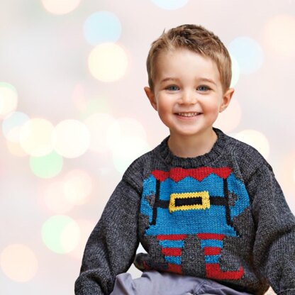 This charming sweater is a traditional drop shoulder sweater with an intarsia Elf motif. To make this a little easier on yourself I highly recommend swiss darning the belt buckle and black outlining on rather than using Intarsia. This is great pattern for those with a little sweater knitting under their belt. The pattern is written for chest sizes 56 (61: 67: 71: 76) cm / 22 (24: 26.5: 28: 30) in which is approx 2 - 11 years old. Worked in DK weight yarn.