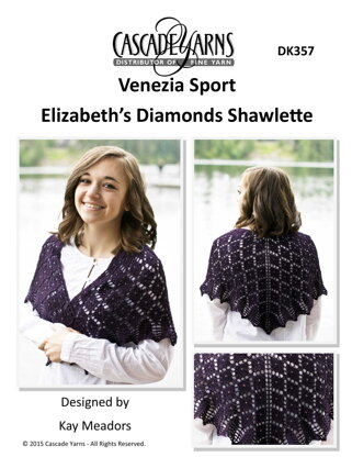 Elizabeth's Diamonds Shawlette in Cascade Yarns Venezia Sport - DK357 - Downloadable PDF is a free Intermediate Knitting pattern by Kay Meadors, available as a Downloadable PDF and includes instructions in English. Super fun to make, this pattern could be your next masterpiece!