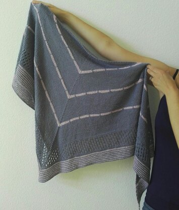 llen´s shawl is a symmetric triangle with stockinette parts which have some decorative lines with garter stitch and slipped stitches. The border has two parts – a holes pattern which makes the shawl more airy and ending with garter lines with altering colors and an optional heart knitted with mosaic technique.