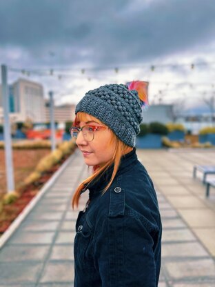 This wonderfully cozy slouch beanie is the most fun I have ever had designing a beanie. It works up pretty quickly and the breaks with the stitches in the 3rd loop give it a good structure and definition.