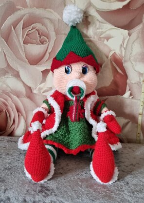 We would like to introduce to you 'Ellie The Elf Baby', she was made in DK(8PLY), was worked in basic stitches and rounds, stands at approximately 18" in height and was written in U.S terminology.