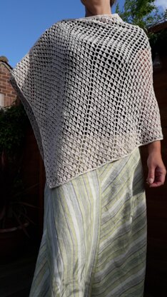 I made this summer cover-up whilst on holiday in the beautiful Suisse Normande. The weather was wonderful (for the most part!) but could be cool in the evenings, so I needed something light and airy to throw on when we went out for meals. The design came about as I wanted a bit more pattern to the stitching than repeated row upon row, so I left out a picot here and there, creating a band every so often.