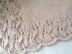 Blanket is knit in one piece from the bottom up, with a lace border on all edges, lace pattern is written and charted.