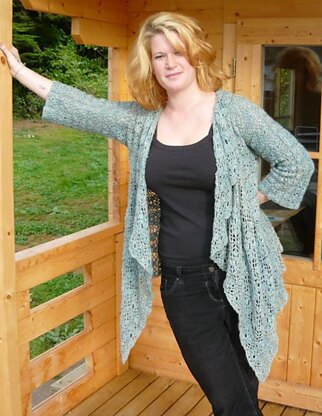 Elsa is a stunning waterfall cardigan. It is made using block motifs, square and triangle, and in 2 different crochet hook sizes to graduate the drape. It has a loose fit and is written in 3 sizes.