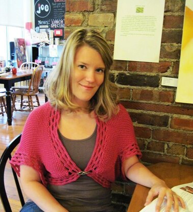 Worked flat in one piece, Elspeth is knit at a looser gauge in seed stitch and incorporates neck and back shaping to show off Shine Sport’s silky drape. Edgings are crocheted directly onto the garment after knitting is complete and armholes are seamed.