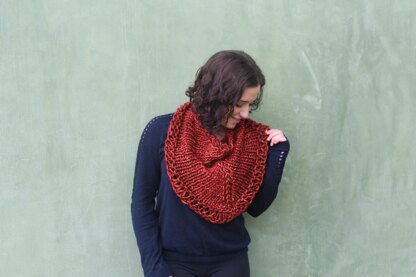 Embers Cowlette has the ease of wearing a cowl but the look of a shawl around your neck. Suitable for Super bulky or 2 strands of bulky weight yarn.
