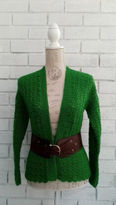 Notes The cardigan is worked in separate pieces from the top down. The Back and Fronts are joined before the waistband, which is worked in one piece. The peplum is then worked in one piece from the waistband down. Sleeves are then added and the front bands finish the garment. The cardigan is fastened with a brooch/belt or fastener of choice.